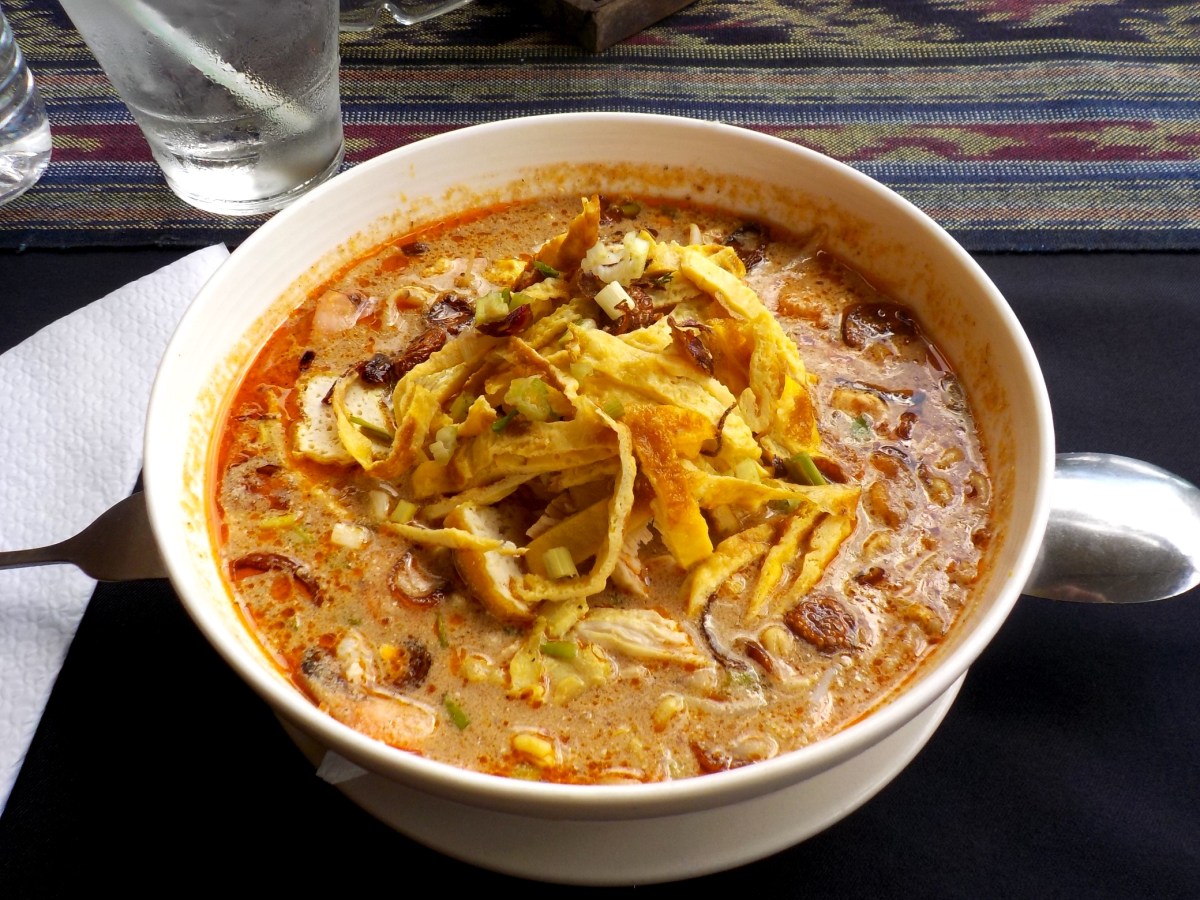 170425-027-2 Veröffentlicht 4. Juni 2017 in 2080 × 1560 in Borneo: Abschied von Matang ← Vorherige Nächste → Traditionelle Sarawak-Laksha mit Nudeln, Garnelen, Geflügel und Ei
