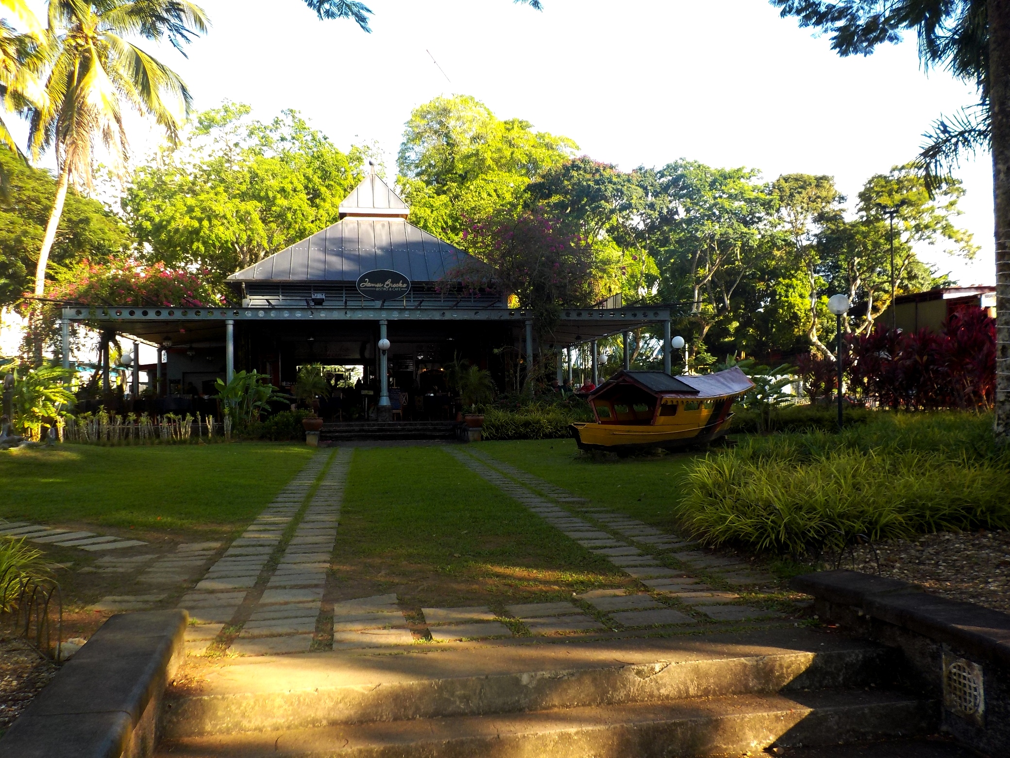 170425-094-2 Veröffentlicht 4. Juni 2017 in 2080 × 1560 in Borneo: Abschied von Matang ← Vorherige Nächste → Direkt an der Waterfront: Restaurant James Brooke, wo man eine sehr gute Laksha gibt