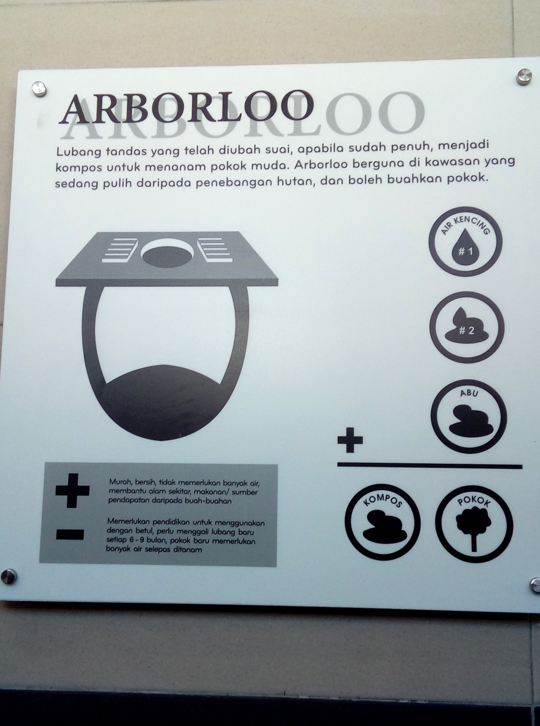 170425-106-2 Veröffentlicht 4. Juni 2017 in 1824 × 2450 in Borneo: Abschied von Matang ← Vorherige Ominöses Schild in einer öffentlichen Toilette. Die werden wohl – wenn sie voll sind – benutzt, um Bäume heranzuzüchten.