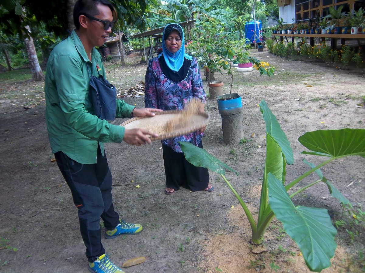 170503-109 Veröffentlicht 17. Juni 2017 in 2000 × 1500 in Borneo: Ein vollgepackter Tag ← Vorherige Nächste → Sam siebt die leichten Schalen aus, die auch als Dünger dienen